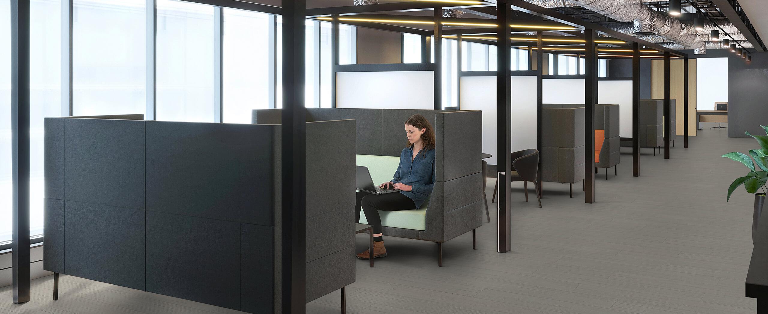 Moderne arbejdspladser kræver lige høj grad af fokus, komfort og bæredygtighed. REGUPOL infintium og REGUPOL upscale skaber gulvoverflader, der understøtter alle tre. De lyddæmpende og akustiske egenskaber hjælper med at dæmpe lyden af trin og bidrager til roligere omgivelser – især i åbne kontormiljøer og mødeområder.