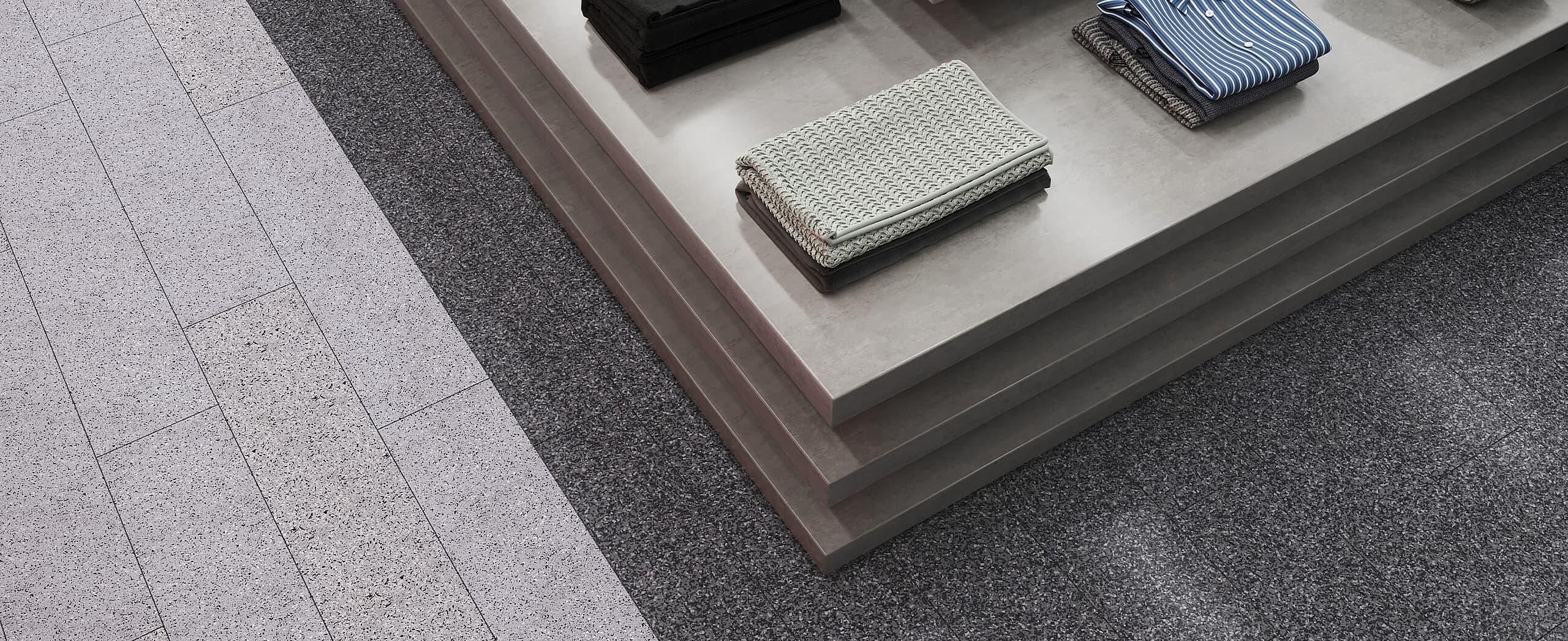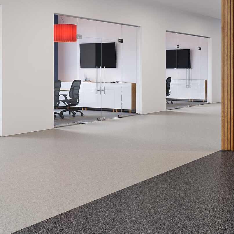 Mørke overflader med varme beige og sandtonede striber afspejler lyset fra en skyline om natten. Intel legemliggør urban raffinement – rent, præcist og intelligent. Man kan mærke byens rytme, arkitekturens og fremskridtets puls. Et gulv, der fortæller historier om design, teknologi og fremdrift.
