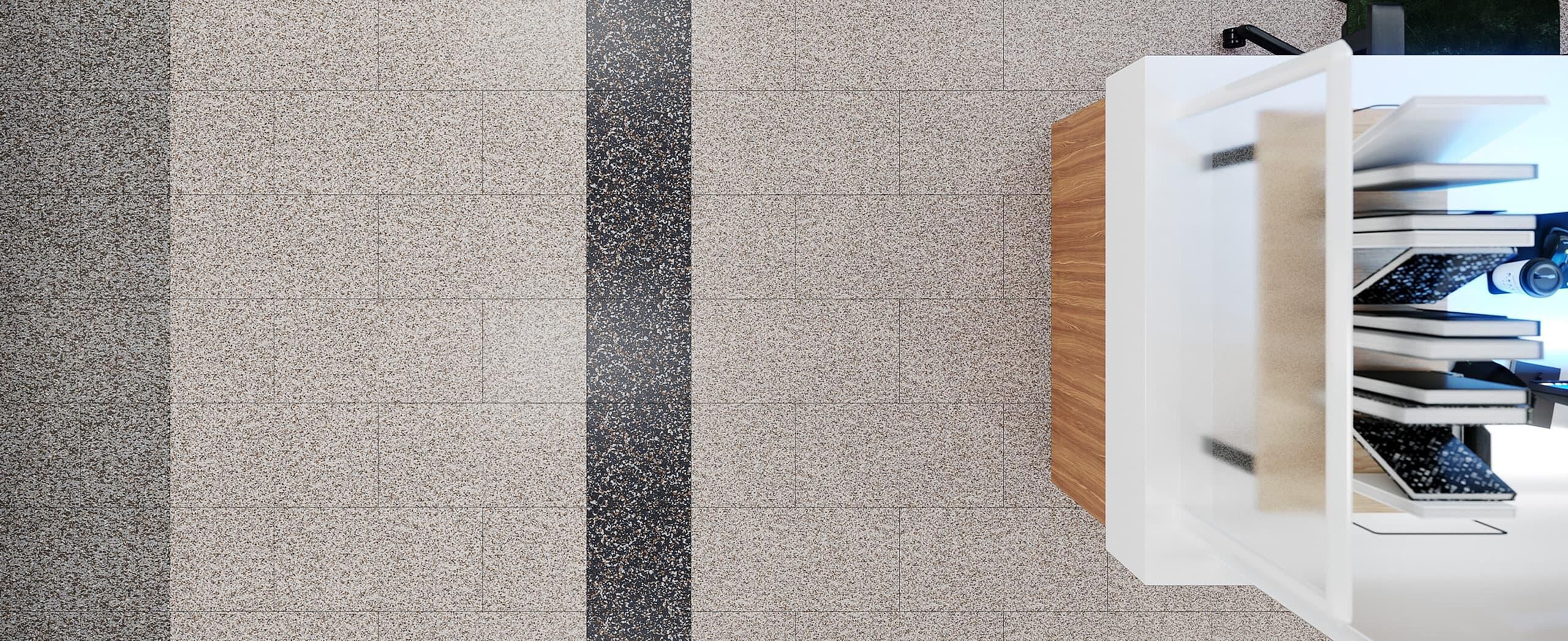 Dybe sorte og koksgrå toner med lysere pletter – som skæret fra forlygter i natten. Road Trip udstråler bevægelse, utallige kilometer og lyden af dæk mod uendelige landeveje. En fortælling om energien ved rejser og forandring. En overflade, der holder et rum i konstant, stille bevægelse.